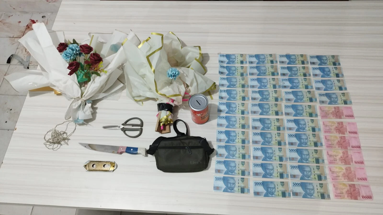 Dalam penangkapan tersebut, polisi menyita uang palsu pecahan Rp100.000 sebanyak delapan lembar dan uang asli dari berbagai pecahan dengan total Rp 3,5 juta.
