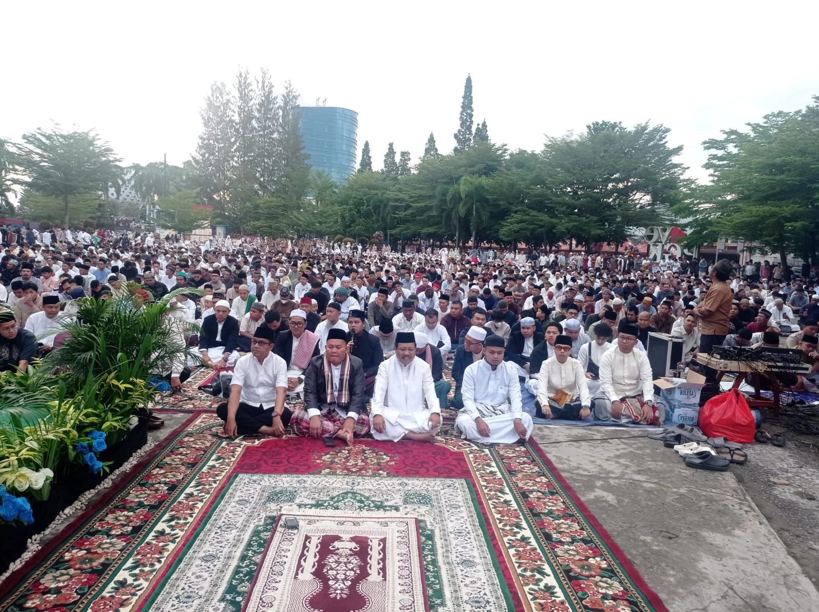 “Hari ini kita melaksanakan salat Idulfitri 1 Syawal 1447 H. Bulan Syawal adalah bulan kita ditempa, baik lahir maupun batin. Insyaallah lahir kita, raga kita semakin sehat dan semakin kuat. Lahir dan batin kita, insyaallah menjadi insan yang bertakwa kepada Allah Swt.,” ujarnya.