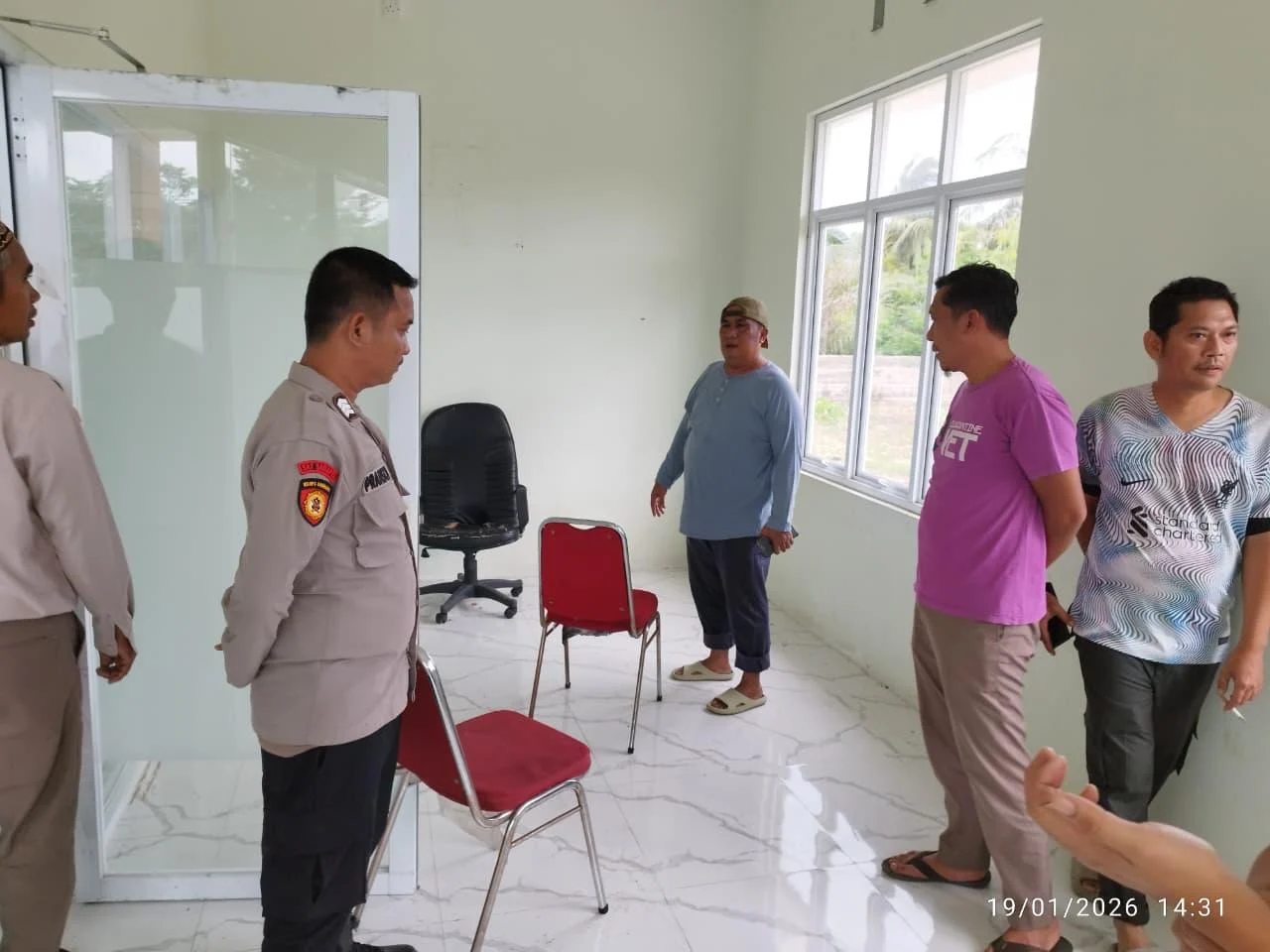 Saat dilakukan pengecekan, ditemukan pintu samping rusak, jendela pecah, serta sejumlah barang inventaris kantor hilang dan sebagian dalam kondisi rusak.