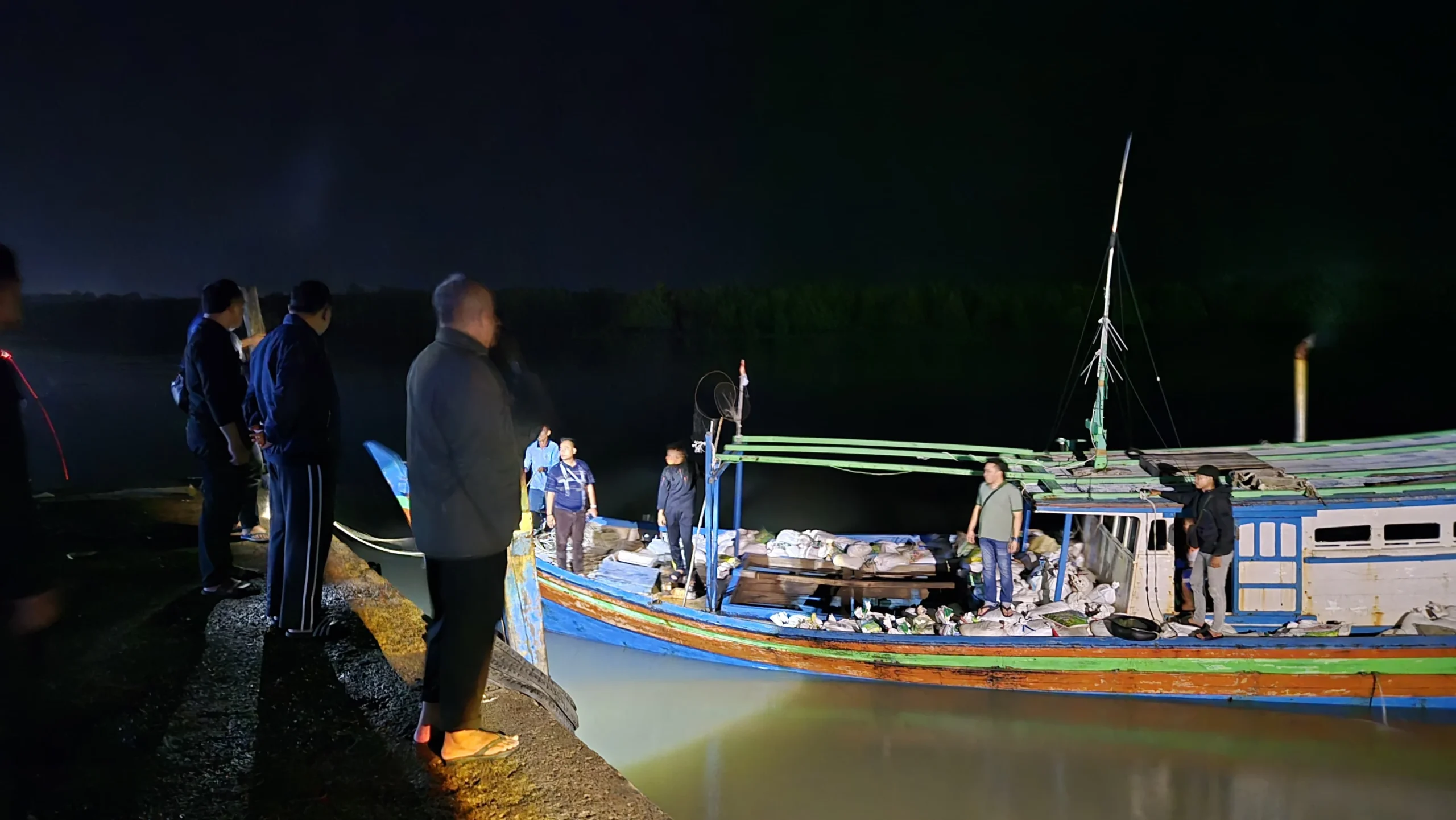 “Setelah dilakukan pengecekan, tim gabungan berhasil mendapati ratusan karung diduga pasir timah yang dibawa oleh kapal kayu tersebut,” ujar Fauzan.
