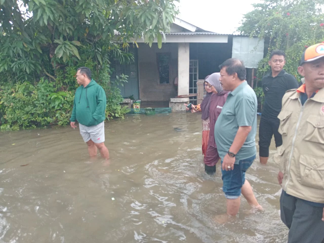 Saat menyusuri jalan yang tergenang, wali kota menyempatkan berdialog dengan warga terdampak banjir.