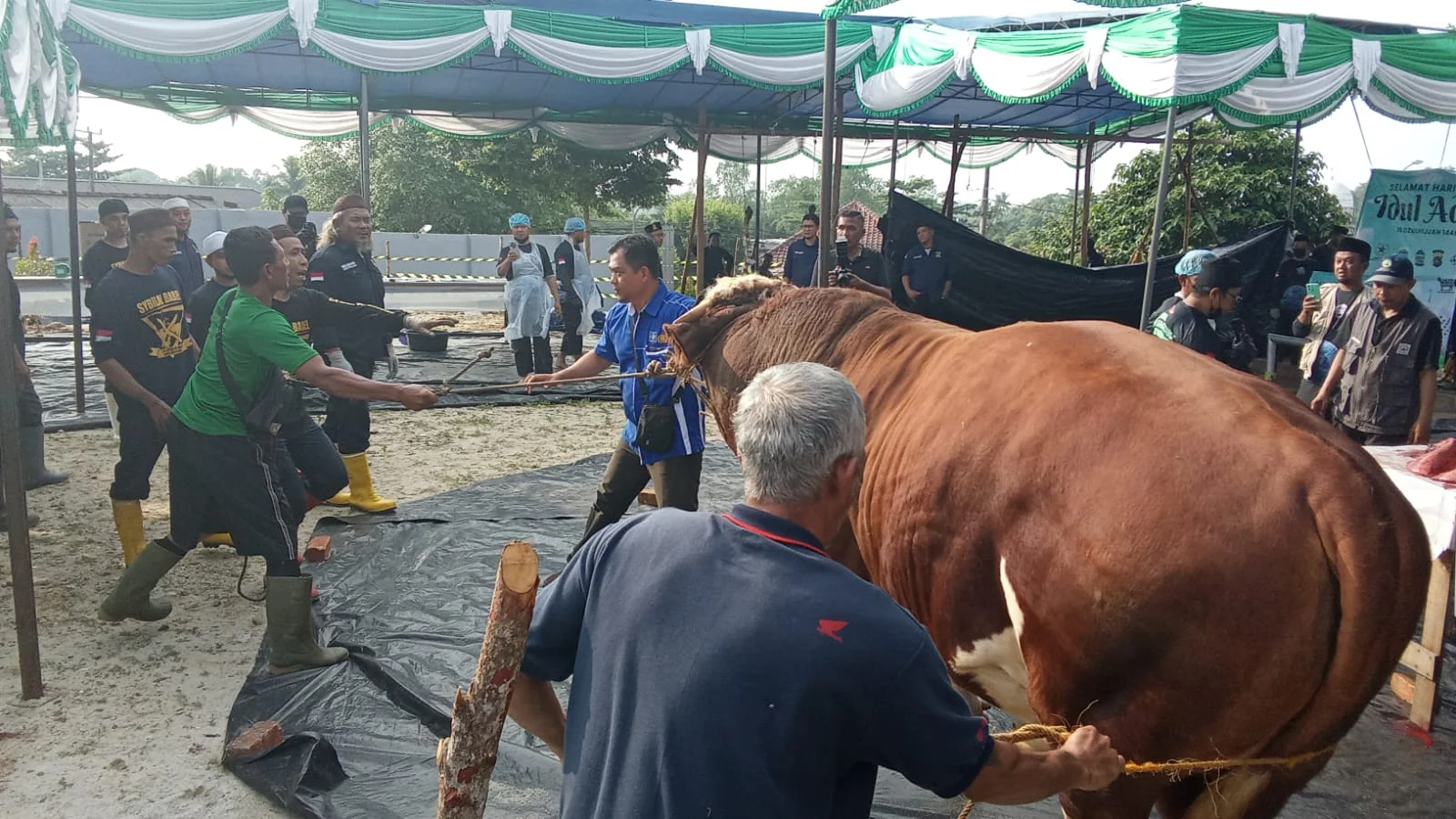 “Ini menjadi momentum kebersamaan kita, dari masyarakat, lembaga pemerintahan, badan usaha, termasuk tadi sapi dari presiden yang disembelih di Masjid Kubah Timah,” kata Unu.