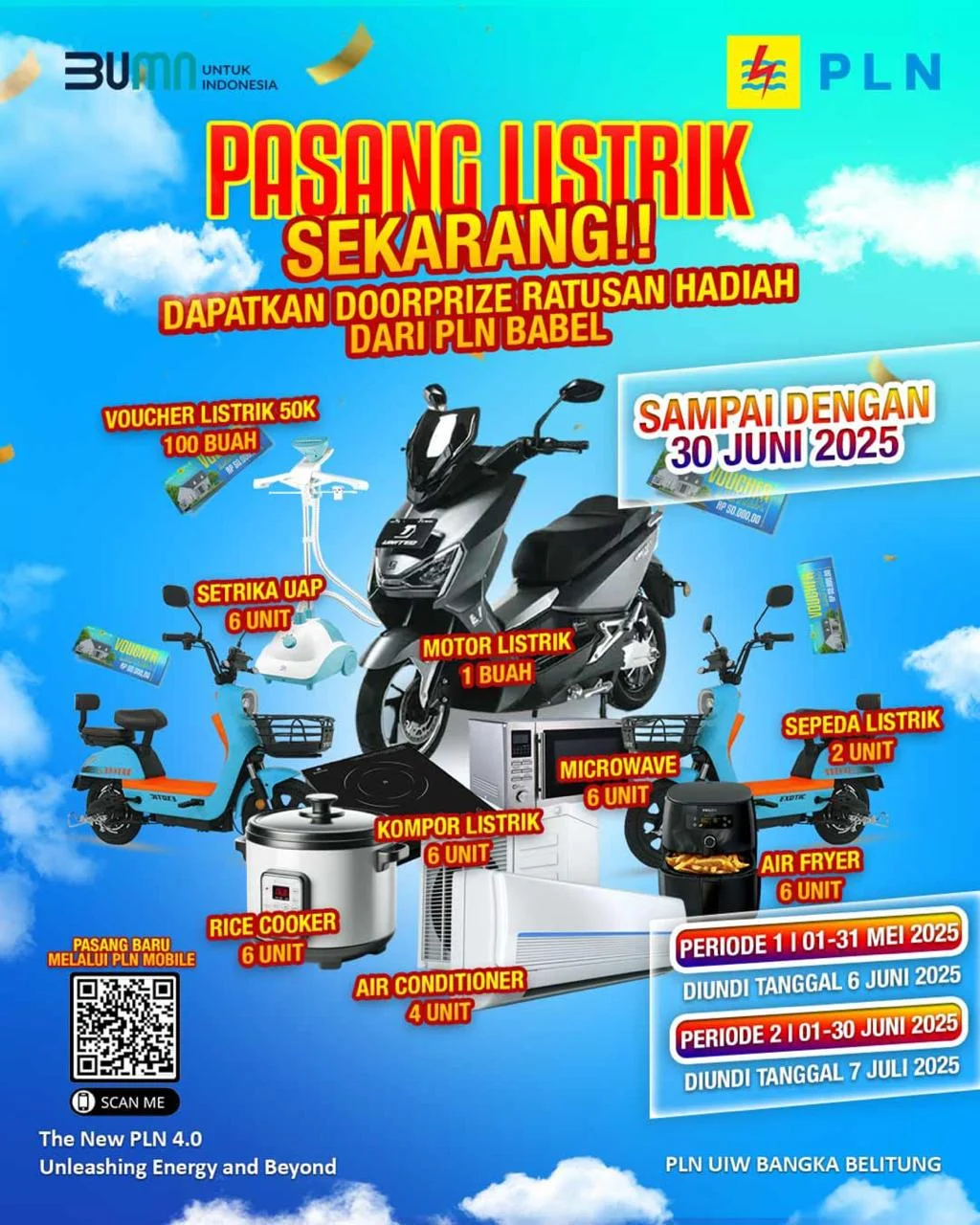 Semarak promo kelistrikan kembali hadir di Bumi Serumpun Sebalai! PT PLN (Persero) Unit Induk Wilayah Bangka Belitung (UIW Babel) kembali menghadirkan program spesial bertajuk “Live Sale Pasang Baru Listrik”, yang siap memanjakan masyarakat dengan berbagai hadiah spektakuler, promo menarik, dan pengalaman digital yang seru.