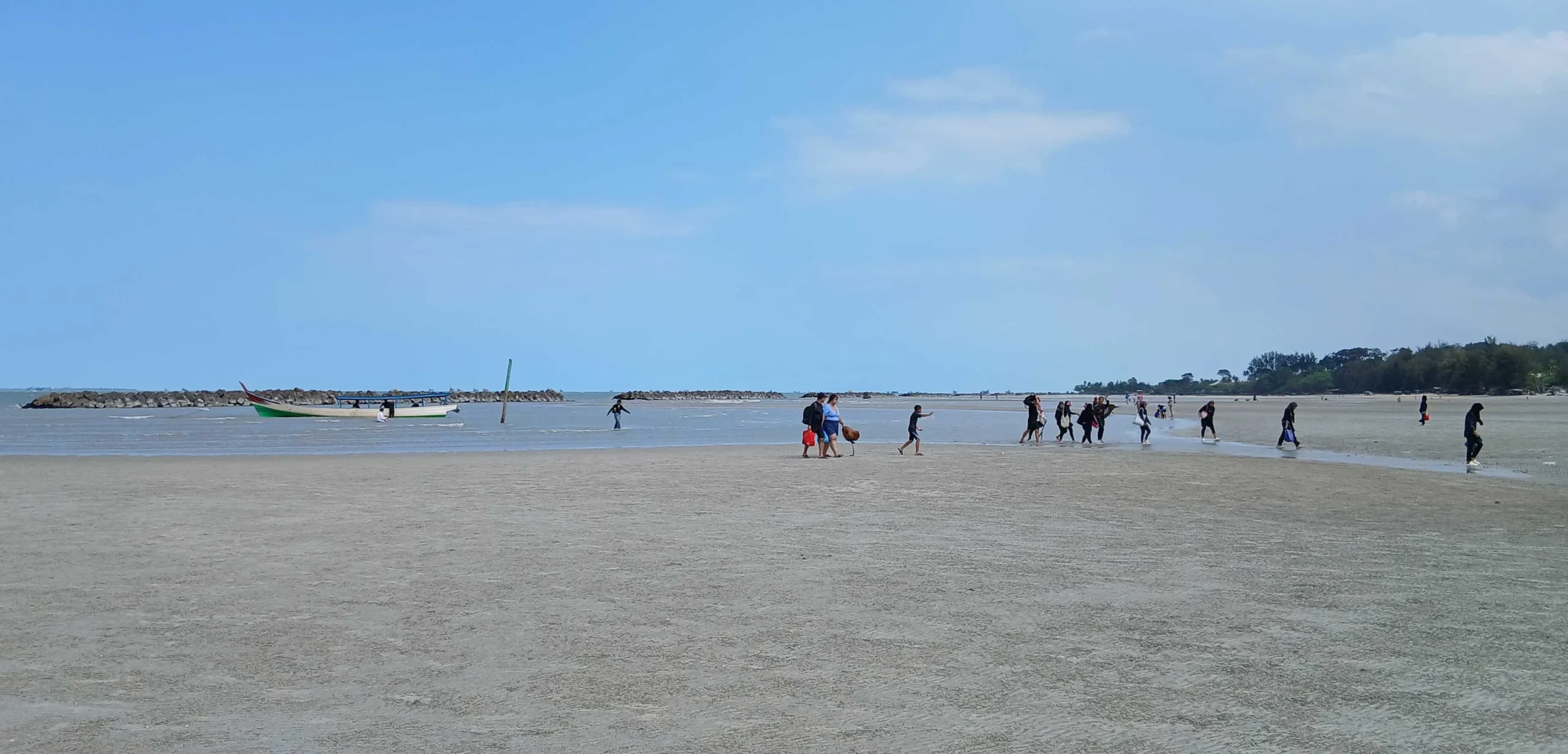 Pada momen kali ini ombak dalam kondisi surut sehingga bentangan pantai berubah menjadi lebih luas.